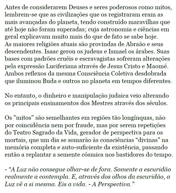 Muito legal estes posts feitos com partes do livro Lúcifer. Muito grato pelo trabalho, mestre! Luz pra nós!