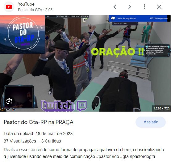 Um dia desses sintonizei uma live desse pastor do GTA. Que viagem! Deus sabe ser zoeiro também. 😅 kkkk luz p’ra nós!