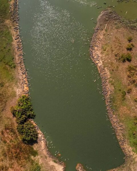 Registro aéreo mostra barreira de jacarés no Pantanal - Escola de Lucifer